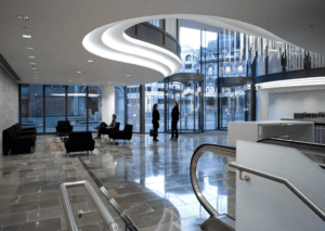 Notably, the building achieved a BREEAM “Excellent” rating, underscoring its commitment to sustainability. The energy-efficient office spaces, combined with Prolojik’s advanced lighting control systems, play a central role in minimising energy consumption, improving indoor air quality, and optimising lighting and thermal comfort. These systems contribute to a healthier, more productive environment for occupants, elevating both the building’s energy efficiency and its aesthetic appeal.